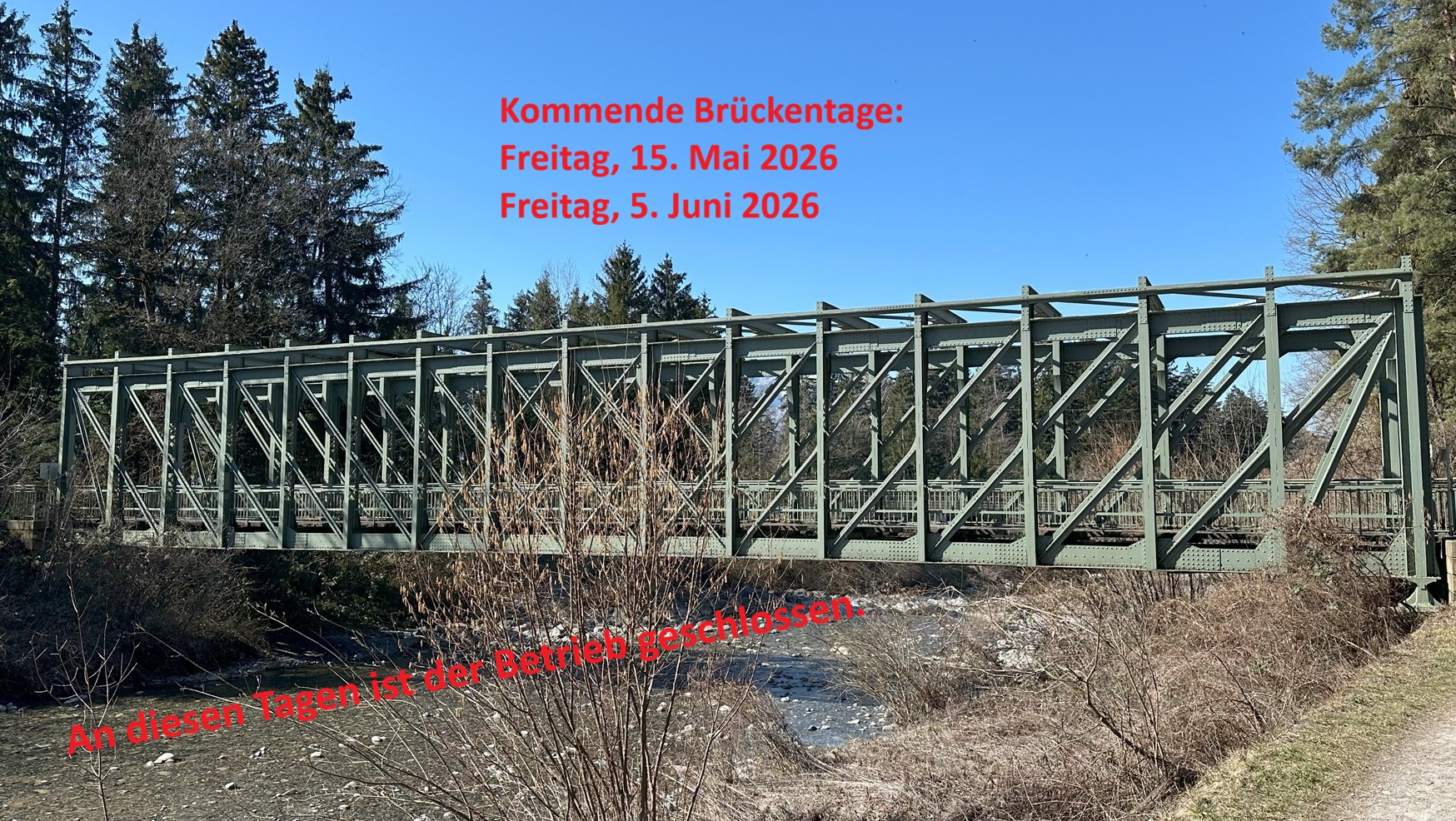 Unser Betrieb bleibt an den kommenden Brückentagen – 15. Mai 2026 und 5. Juni 2026 – geschlossen.